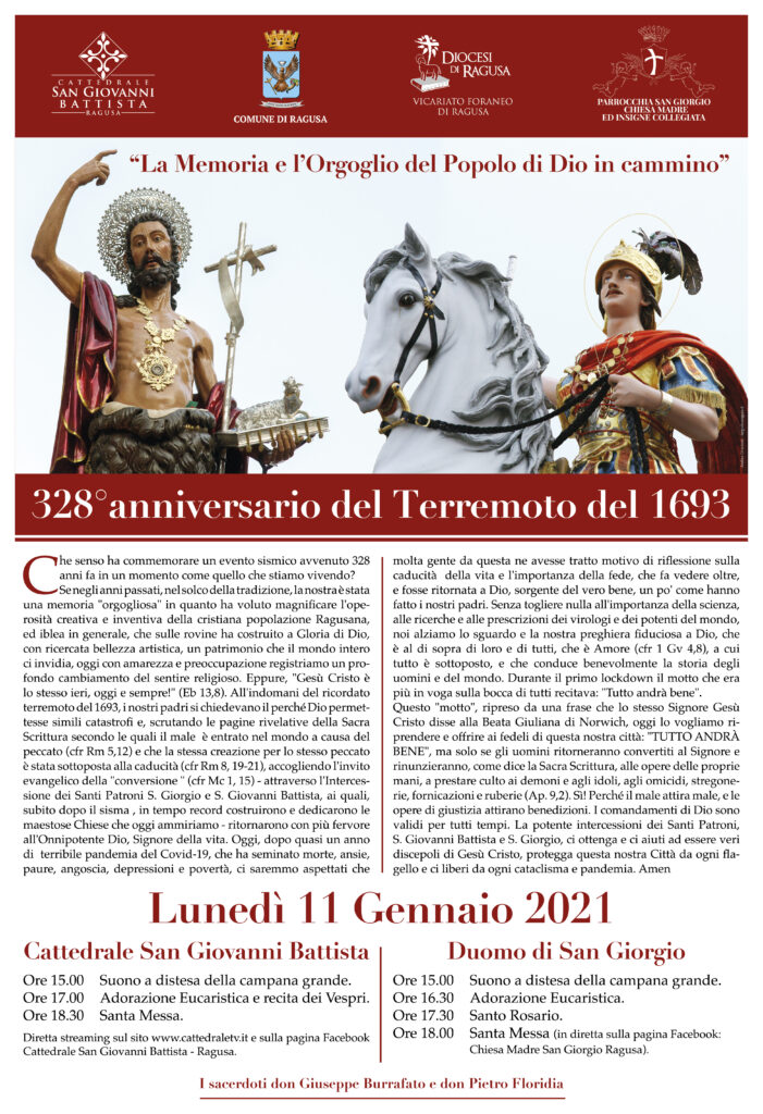 La Memoria e l’Orgoglio del popolo di Dio in cammino, nel 328° anniversario del terremoto del 1693.