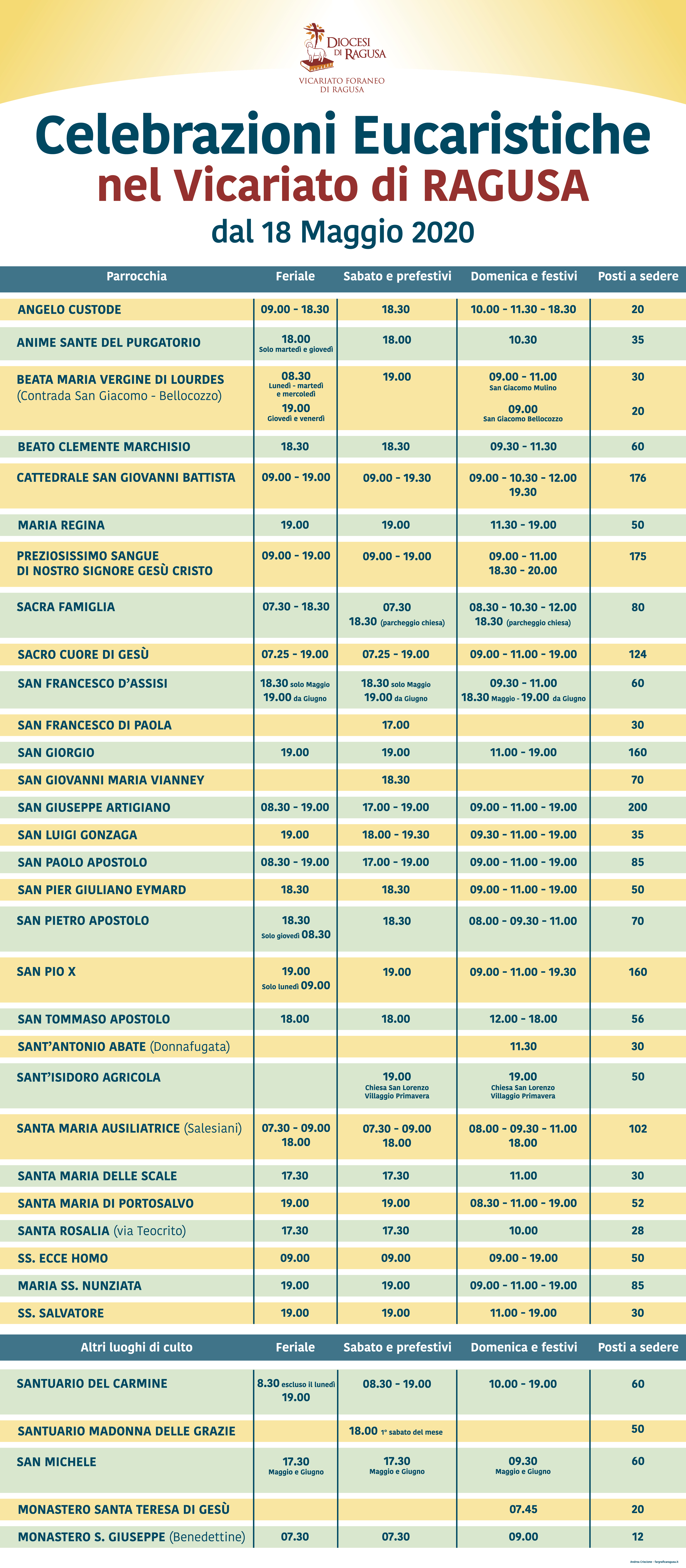 Vicariato foraneo di Ragusa Orari S. Messe, con la capienza delle varie chiese.
