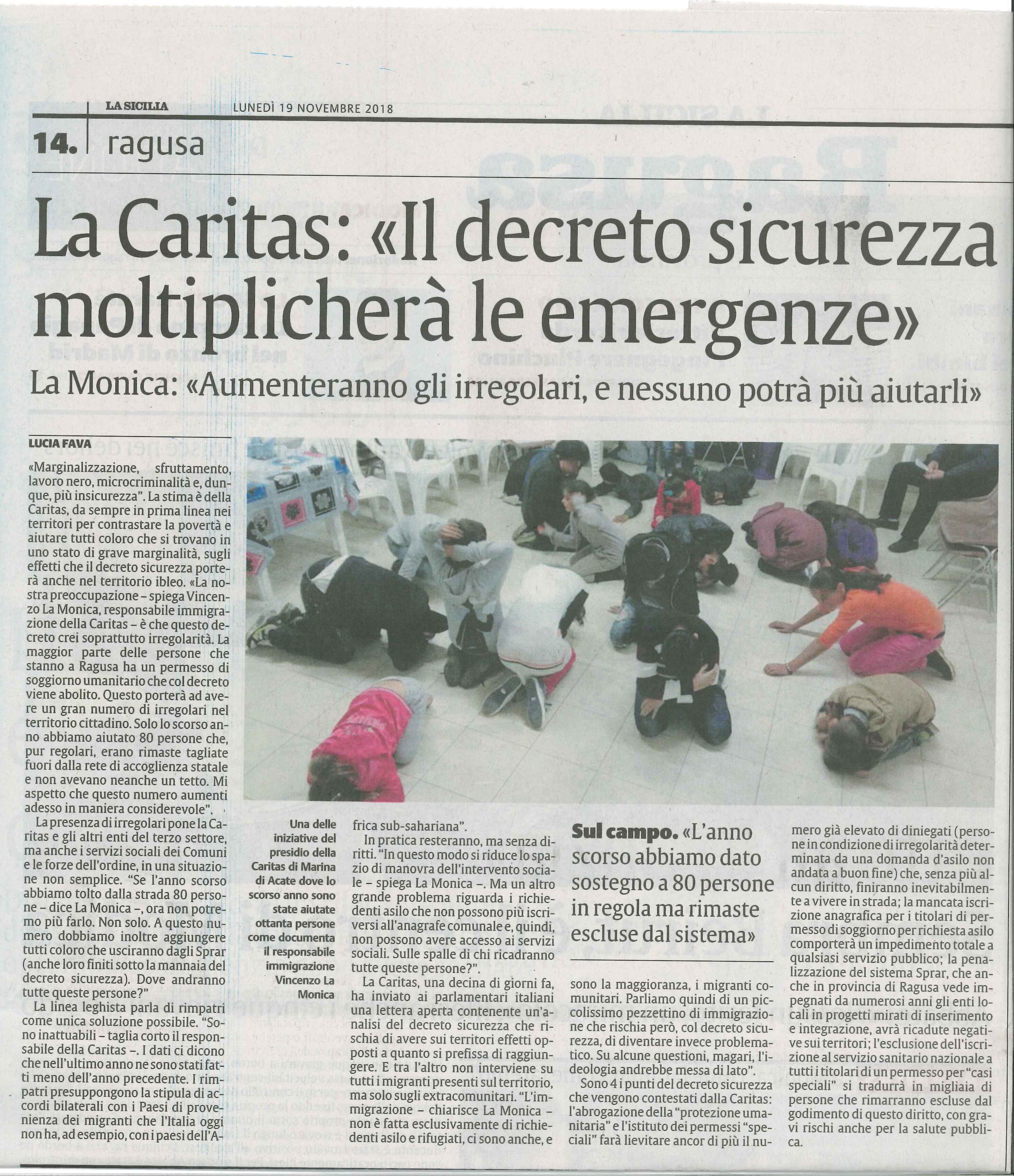 Condividiamo la preoccupazione di CARITAS Italiana e della nostra Diocesi.