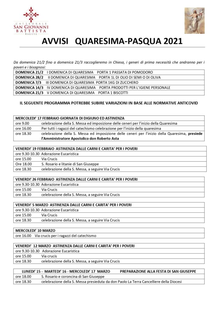 QUARESIMA-PASQUA 2021